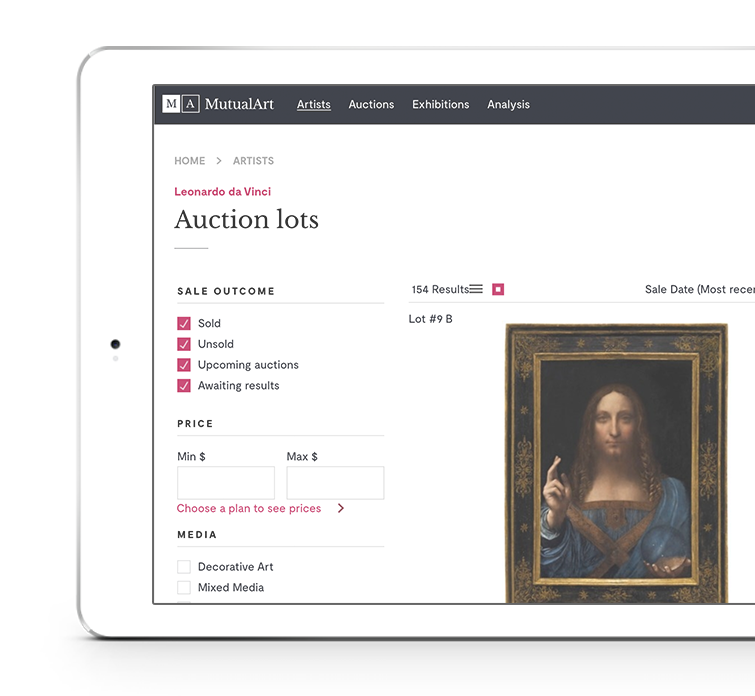 MutualArt offers three different membership types to meet your needs — whether you’re a seasoned collector or simply love art. Personal Alerts start at just $24 a month, with a free trial for all new users. Visit our plans page to learn more.